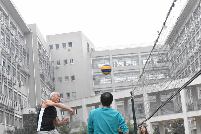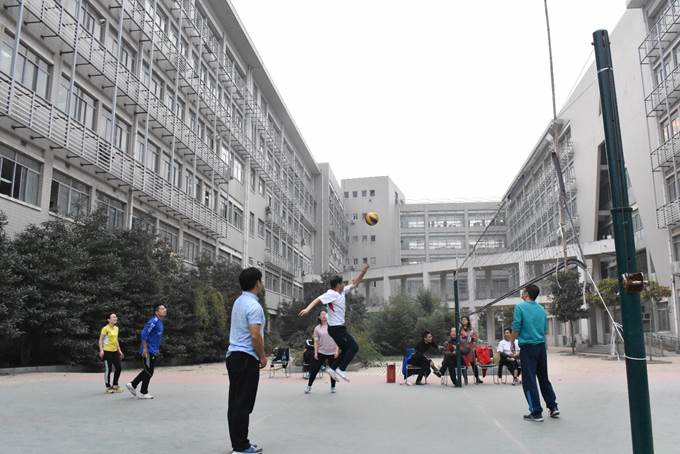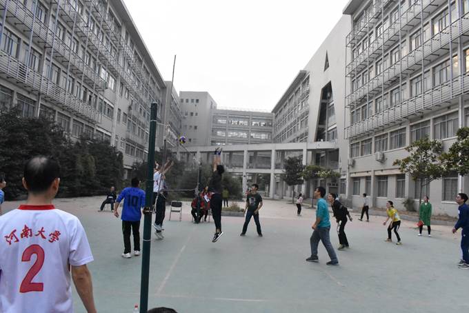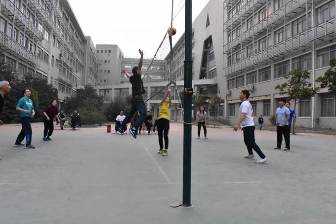 11月9日下午,阳光煦暖,和风轻松,特种功能材料重点实验室大楼后排球场热闹非凡,实验室师生混合排球赛第三阶段比赛在此进行。本阶段两场比赛分别是A组对C组,B组对D组。C组种子选手武四新教授虽出差在外,但另一名实力选手赵伟利教授强势回归,带领本组继续征战,并先下一城。但以杜祖亮教授为核心的A组实力强劲,技战术合理有效,队员发挥稳定,最终以2:1战胜C组。在随后进行的第二场比赛中,B组虽整体实力较弱,但临时引进了几位强大外援,最终战胜D组,取得3分。