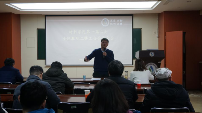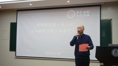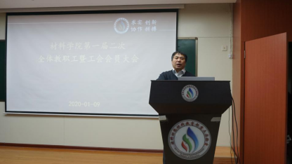 2020年1月9日,材料学院第一届二次全体教职工暨工会会员会议于二楼报告厅隆重召开。会议由材料学院副院长刘谨主持,校工会副主席边海潮受邀出席了本次大会。
