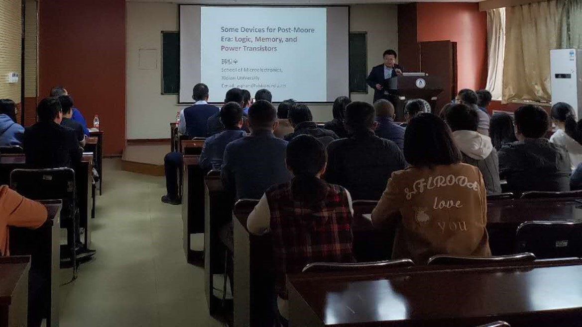 进行学术交流,并在学术报告厅开展了题为“Some Devices for Post-Moore Era: Logic, Memory, and Power Transistors”的精彩报告。本次报告由特种功能材料重点实验室程纲教授主持,学院广大师生及学校理工科单位相关领域的教师与研究生共同参加了此次报告会。